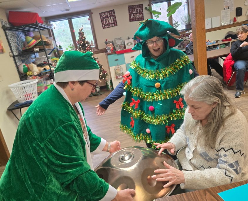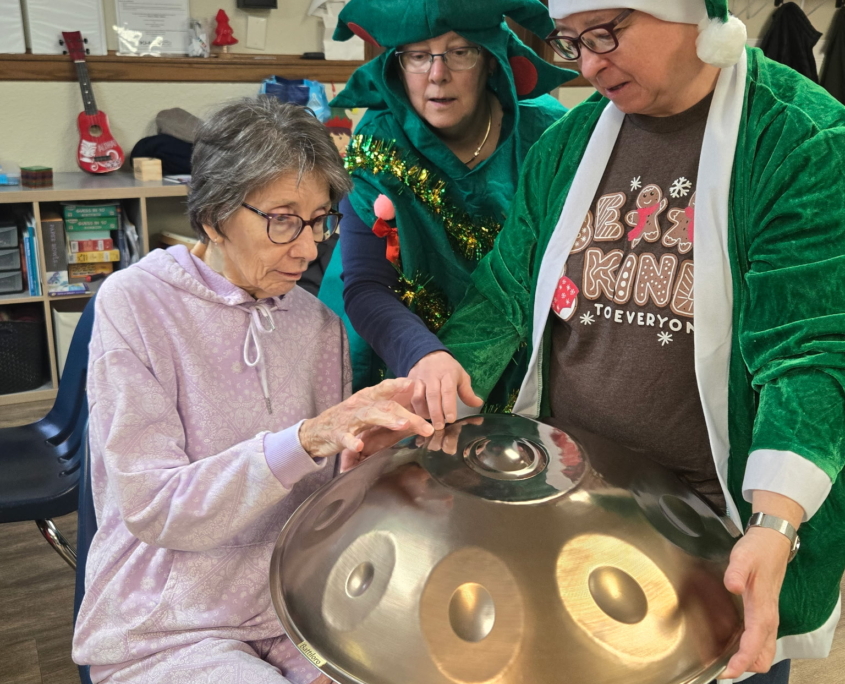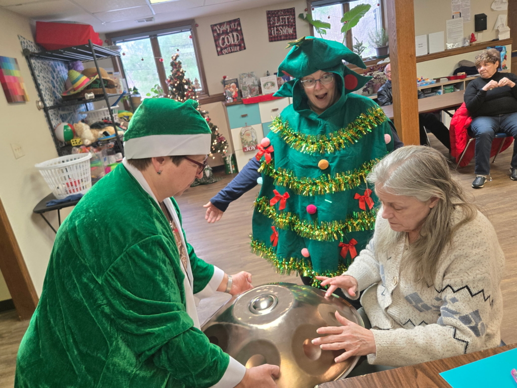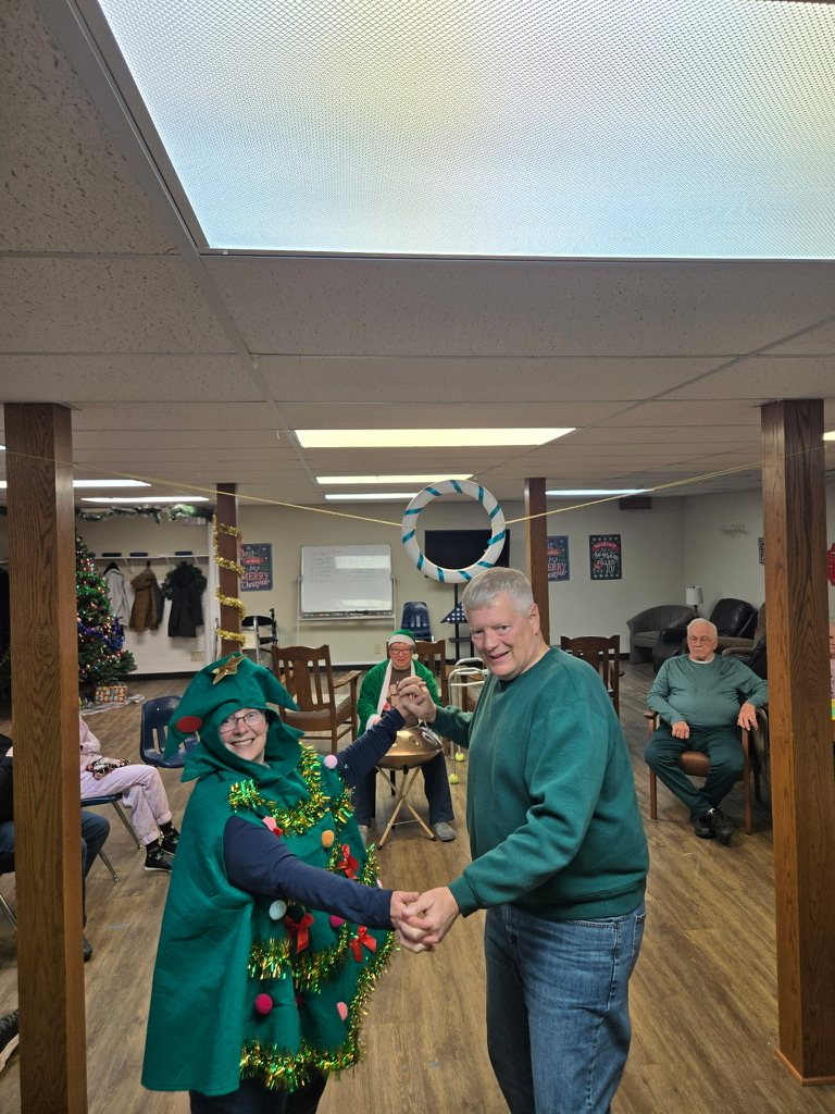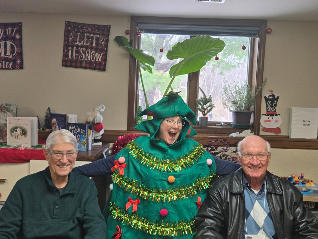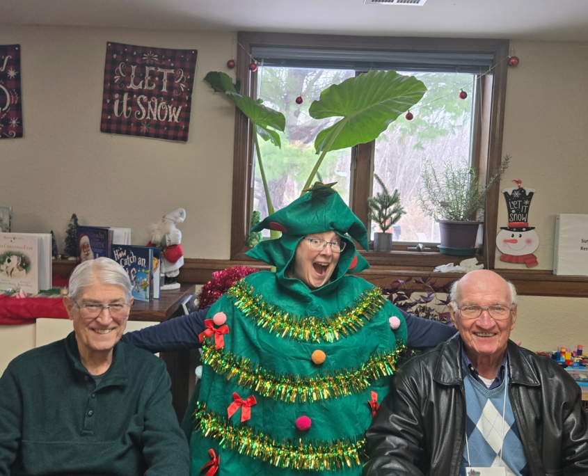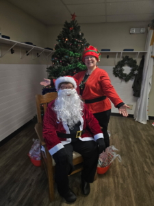 What an amazing morning we had volunteering at Prairie Elder Care Day Program. When they asked us 5’ tall gals to play Santa we were a bit nervous that the clients would be disappointed. But by gosh by jolly everyone had a magical time. What a gift it was for us to hear the laughter, see the smiles, and watch them transform from guarded to golly in seconds. That was before they even found out that Santa and Ms. Claus had a gift for each of them.